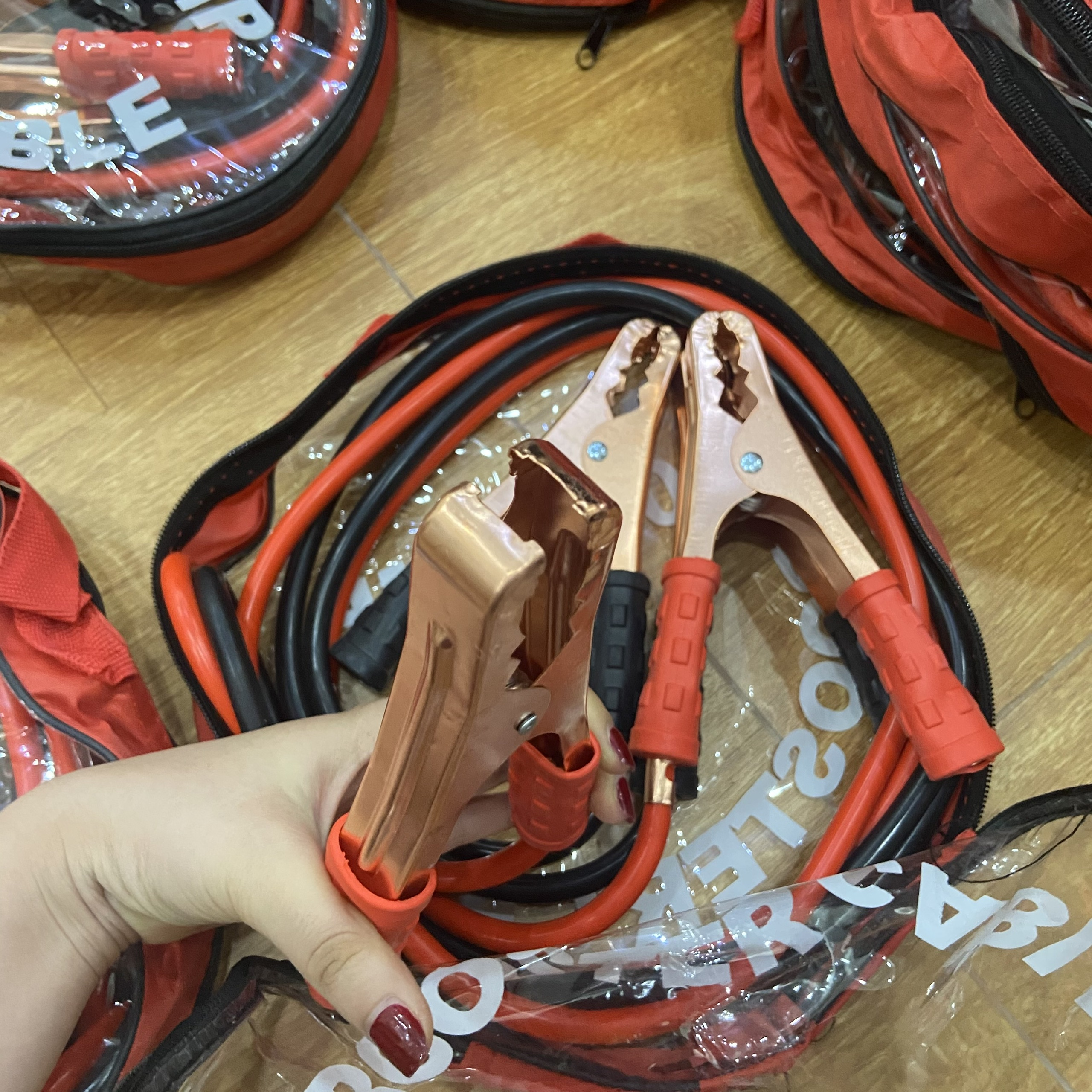 – Nối cực (+) của ắc quy hết điện với cực (+) của ắc quy mồi. Cẩn thận tránh các đầu kẹp chạm, chập vào nhau.
