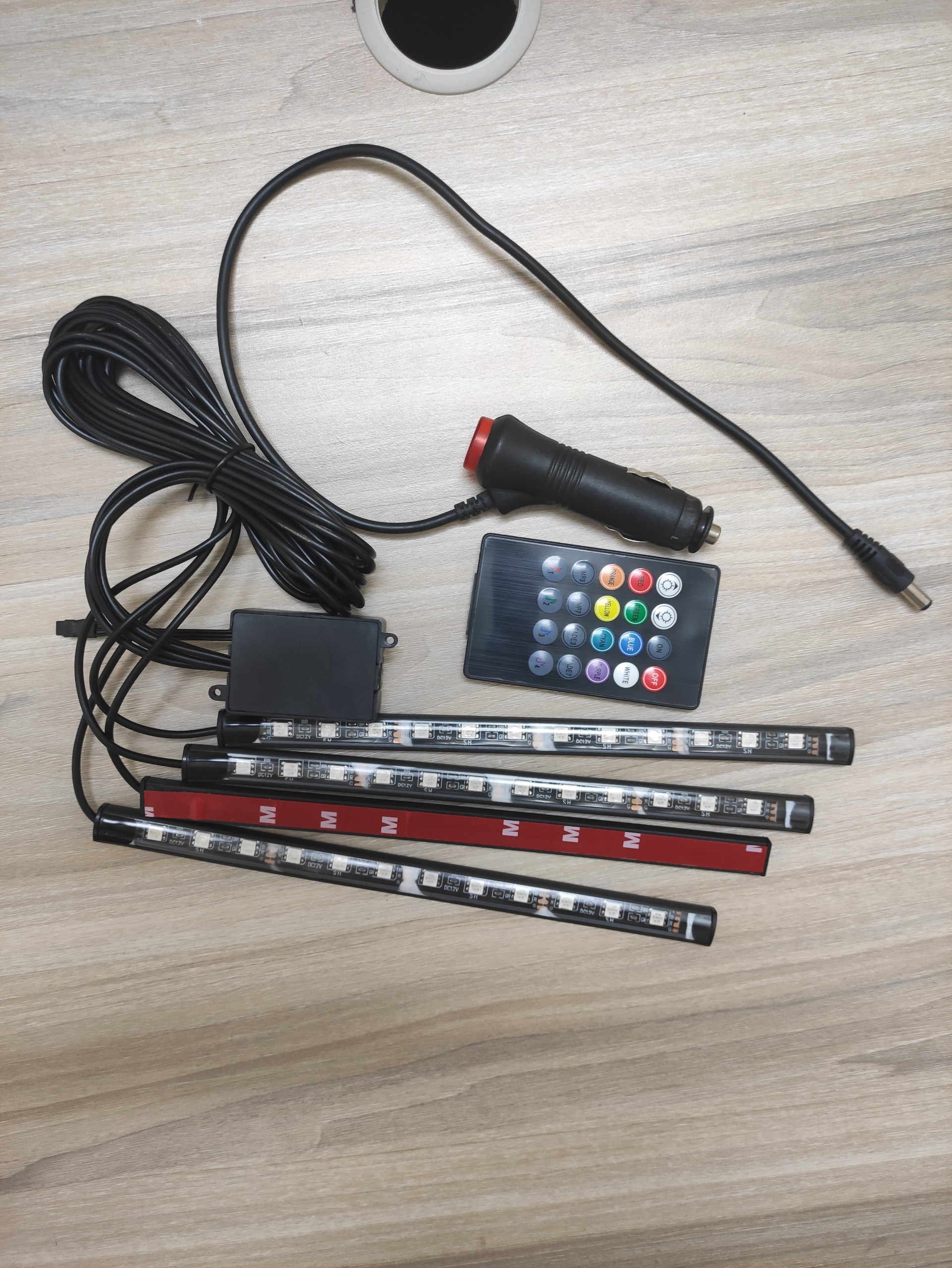 – Điện áp: 12V, cắm vào tẩu điện trên xe, không đụng chạm gì đến đường điện của xe. – 04 đèn led gầm ghế, 01 bảng mạch điều khiển và dây nguồn, 01 điều khiển từ xa. —————-